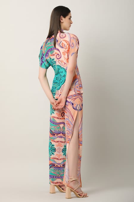 Multi Color Crepe Print Paisley Zyaire Flared Pant