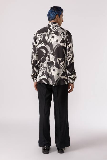 Abstract print design throughout the shirt., Front button closure for easy wear.