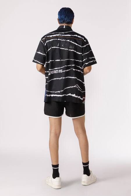 Black Cotton Satin Printed Abstract Line Shirt