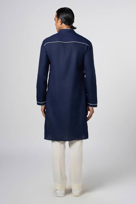 Navy blue kurta featuring bead and sequin embroidery in circular geometric placement
