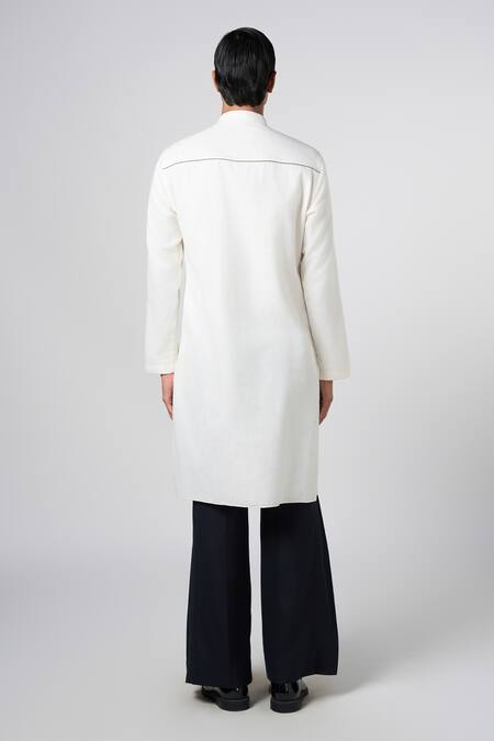 Off white kurta featuring crystal embroidery in a geometric pattern