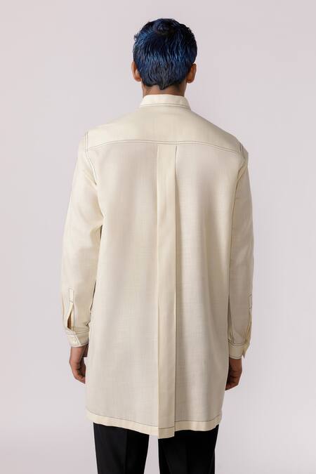 Off white cotton shirt featuring a collar neckline and full sleeves