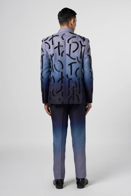 Blue Linen Embroidery Nalki Ombre Stucco Blazer