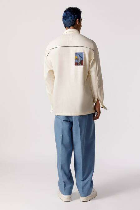 Off White Cotton Printed Abstract Patch Oversized Shirt