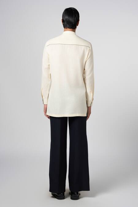 Off-white kurta featuring pitta and bead embroidery in a geometric pattern