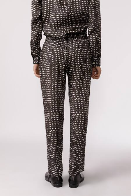 Black Bamboo Silk Printed Polka Dot Pyjama Pant