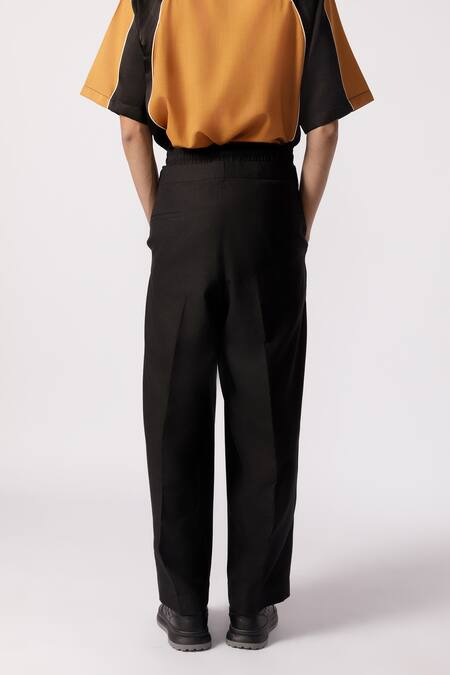 Black baggy pant featuring an attached elasticated and buttoned waistband detail