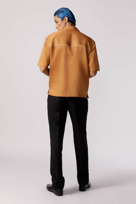 Mustard glaze cotton shirt featuring half sleeves and a lapel collar