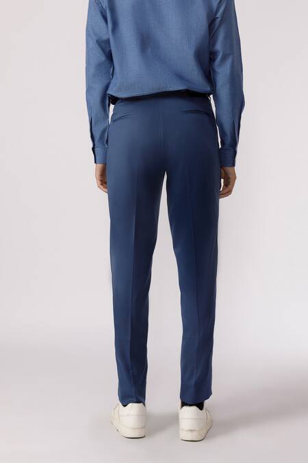 Blue straight pant featuring a solid base design