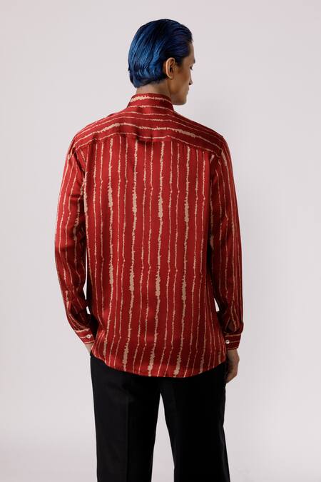 Red modal satin shirt featuring a striped print with a collar and full sleeves