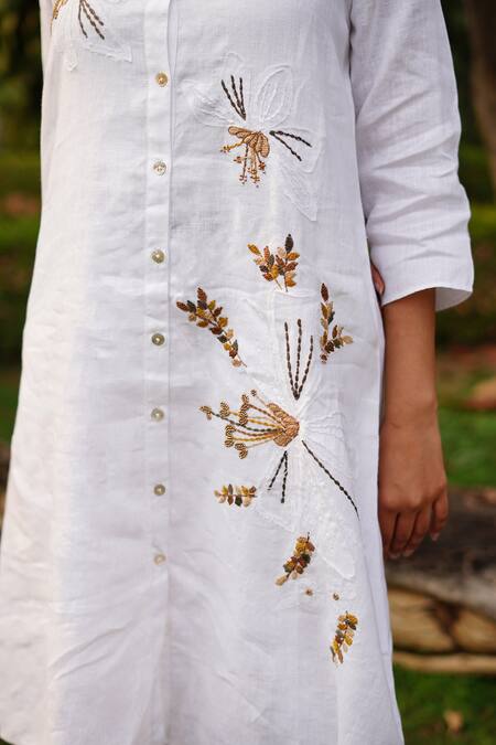 Buy_Linen Bloom_White Linen Embroidery Round Neck Floral Tunic _Online_at_Aza_Fashions