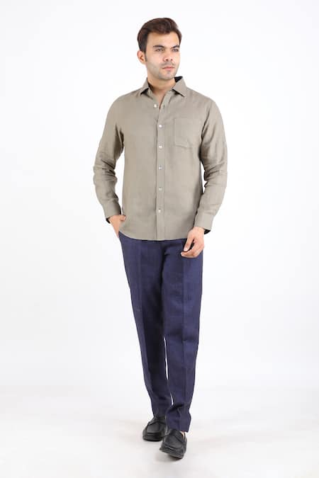 Buy_Linen Bloom_Blue Linen Chambray Pant _Online_at_Aza_Fashions