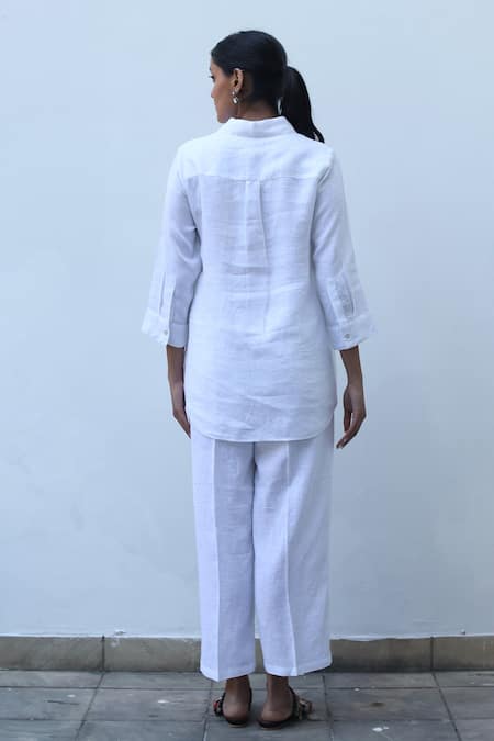 Buy_Linen Bloom_White Linen Embroidery Collared Checkered Shirt _Online_at_Aza_Fashions