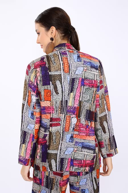 Multicolor Tokyo digital print open blazer with patch pockets.