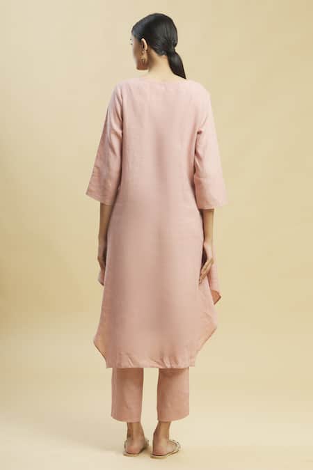 Onion pink asymmetric tunic with placement floral embroidered motif.