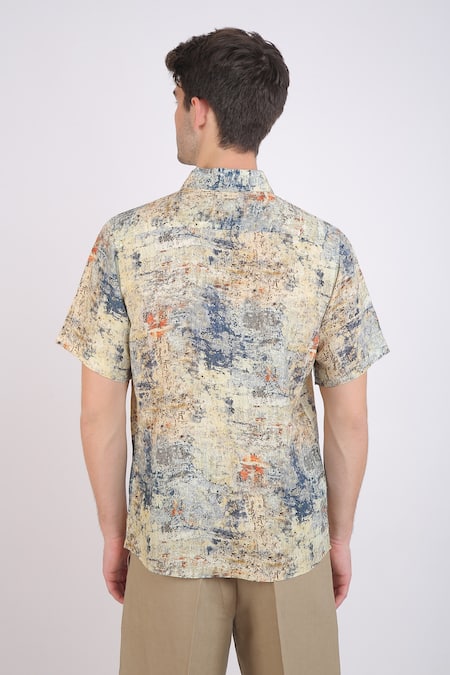 Buy_Linen Bloom_Blue Linen Texture Print Shirt _at_Aza_Fashions