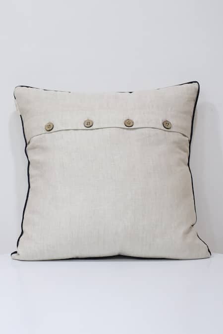 Beige 100% Pure Linen Thread Tufted Embroidered Cushion