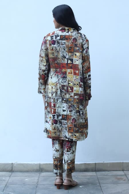 Multicolor cape crafted from 100% linen featuring an all-over digital tile print
