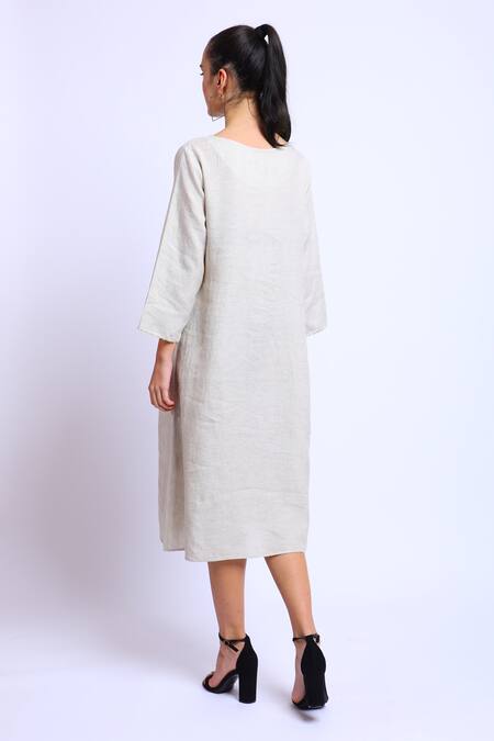 Beige 100% Linen Floral Motifs Round Embroidered Kurti