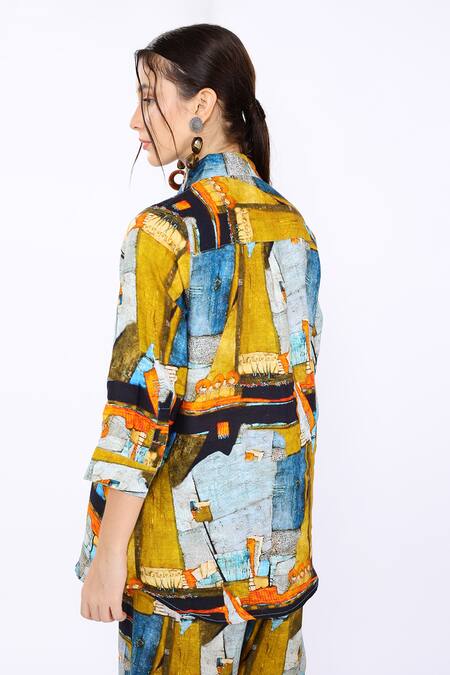 Blue 100% Pure Linen Jamaica Shirt Collar Print