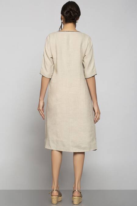 Beige Linen Midi Dress