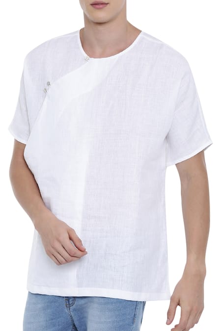 White Linen Overlap Kurta