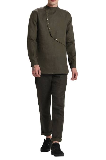 Green Linen Overlap Kurta