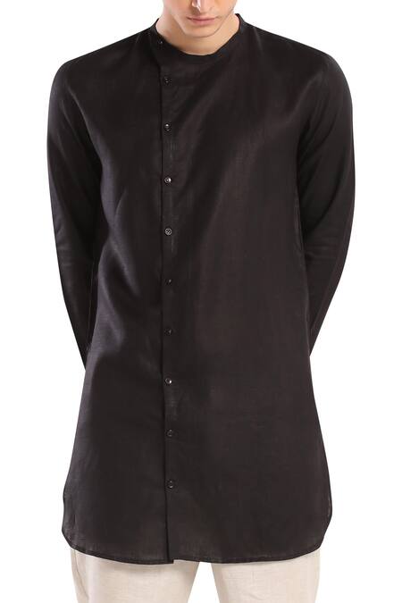 Buy_Son Of A Noble Snob_Black Linen Overlap Style Kurta_Online_at_Aza_Fashions