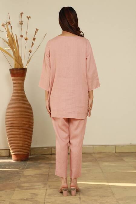 Pink 100% Linen Pleated Tunic