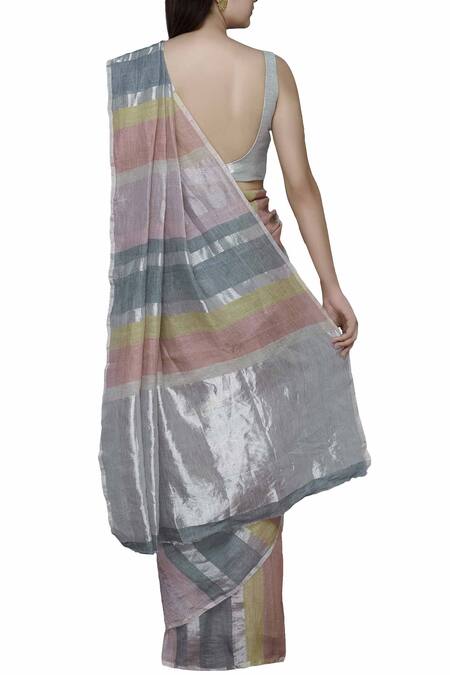 Buy_Anavila_Grey Linen Saree_Online_at_Aza_Fashions