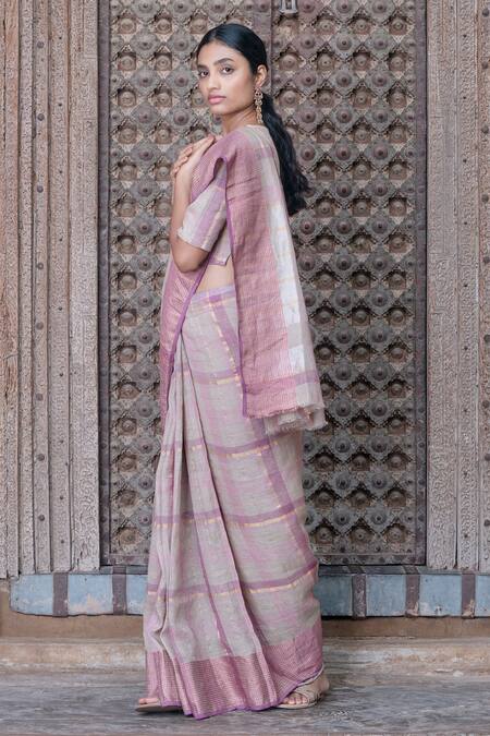 Anavila_Grey Linen Saree _Online_at_Aza_Fashions