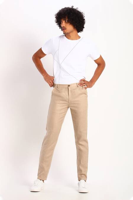 Son Of A Noble Snob_Beige Linen Trouser_Online_at_Aza_Fashions