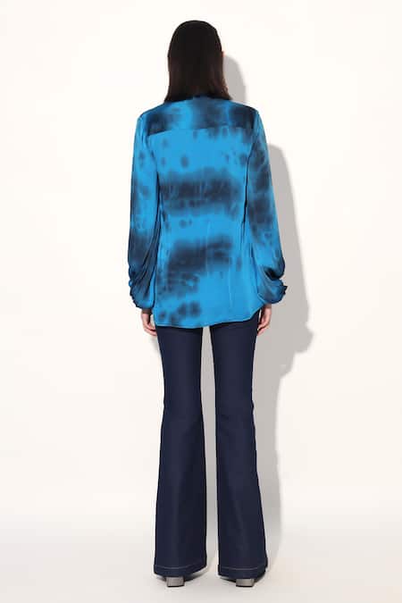 Blue Viscose, Satin Collared Tie-dye Shirt