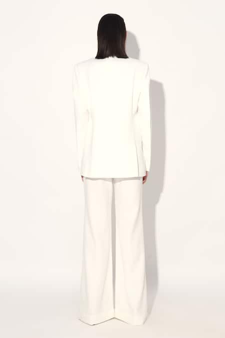 Ivory Crepe Imported Blazer And Pant Set