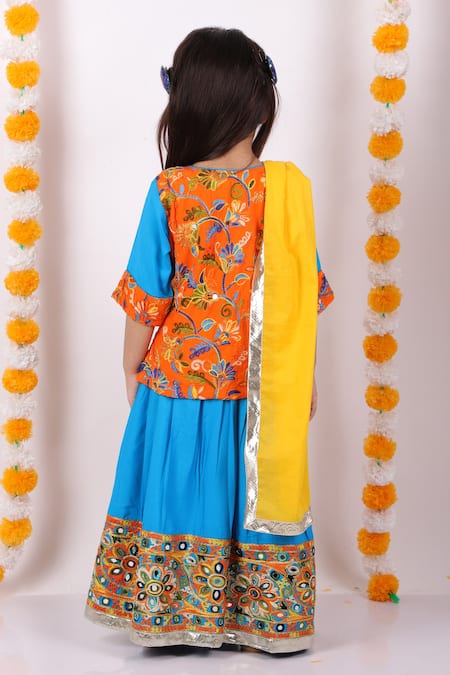 Little Bansi_Blue Cotton Embroidery, Tassels Kurta Lehenga Set _Online_at_Aza_Fashions