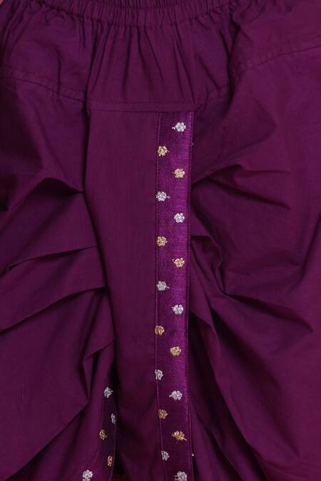 Buy_Little Bansi_Purple Cotton, Silk Embroidery Kurta Set _Online_at_Aza_Fashions
