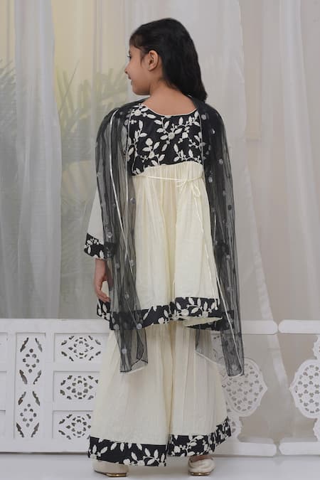 Cream Cotton Embroidery Floral Kurta Sharara Set