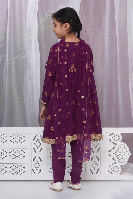 Purple Cotton Zari, Lace, Embroidery Angarkha Pant Set