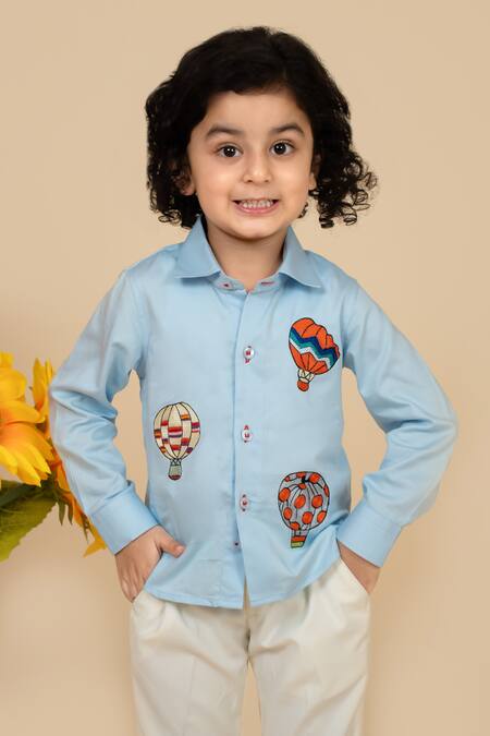 Blue shirt featuring hot air balloon embroidery and full sleeves