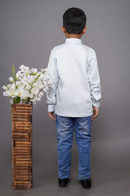 Sky blue shirt featuring a collar and full sleeves with a front button closure