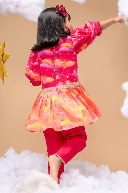 Pink Cotton Satin Dawn Is Invincible Clouds Stars Print Kurta With Dhoti Pant