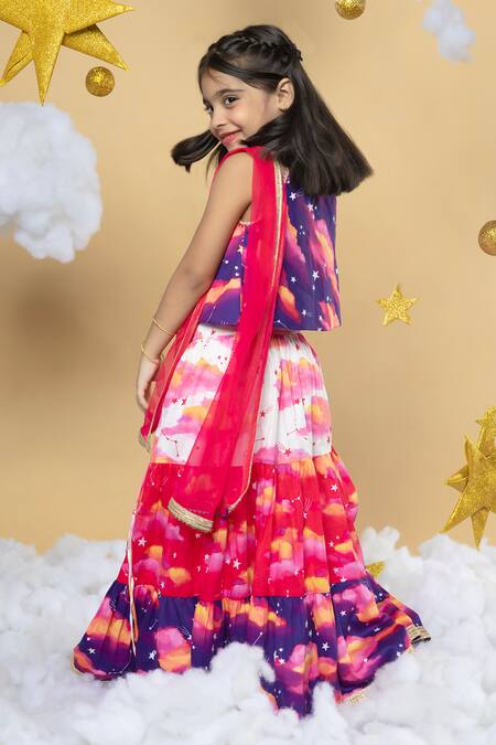 Shop_Little Shiro_Purple Cotton Satin, Cotton, Tulle Tassels Clouds And Stars Lehenga Set_Online_at_Aza_Fashions