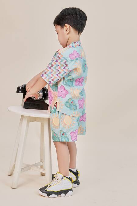 Multi Color Poplin, Cotton Embroidery Sun On My Arm Printed Shirt With Shorts