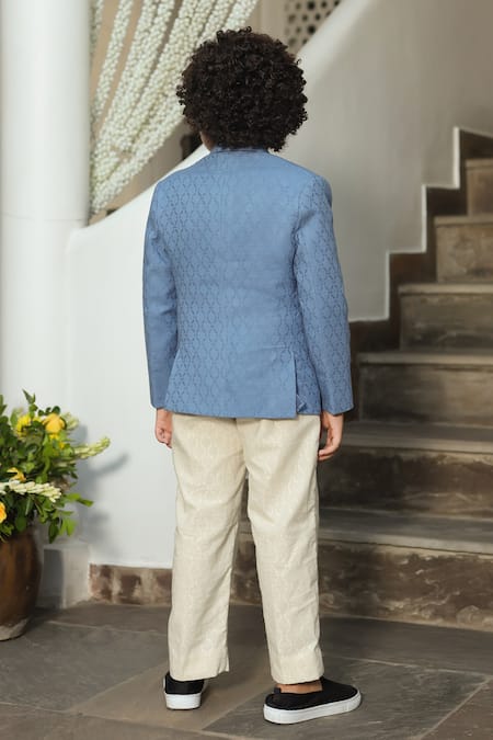 Blue Cotton Embroidery Aghyaar Blazer And Trouser Set
