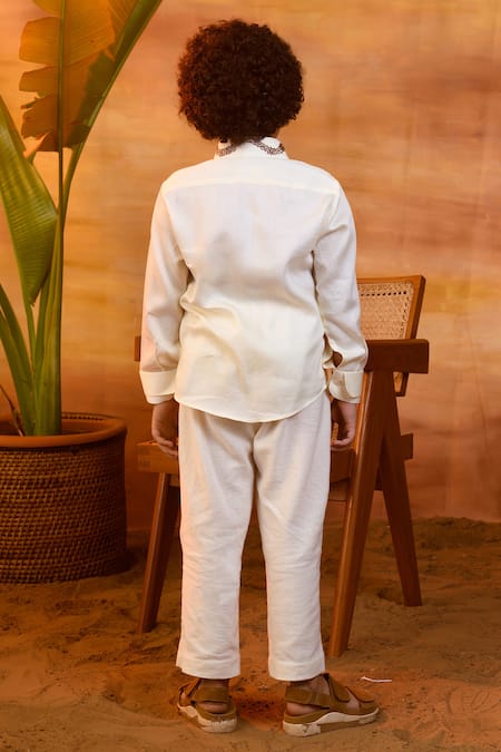 Buy_Littleens_Yellow Cotton Satin Embroidery Bumblebee Shirt _Online_at_Aza_Fashions