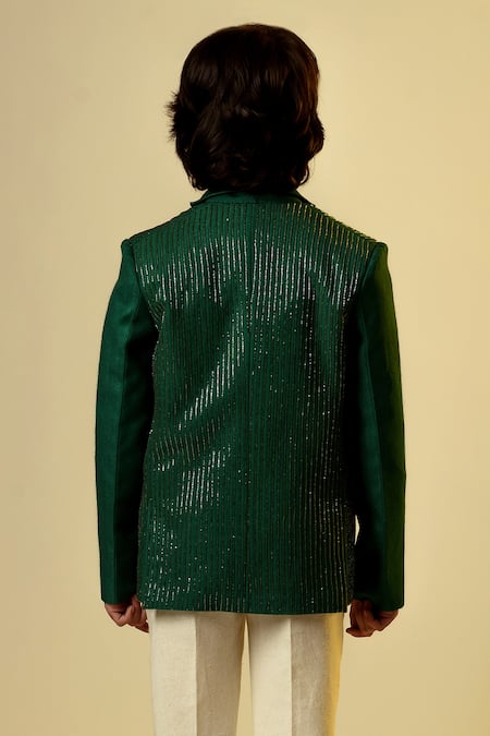 Green blazer featuring cutdana embellishments in a horizontal stripe pattern