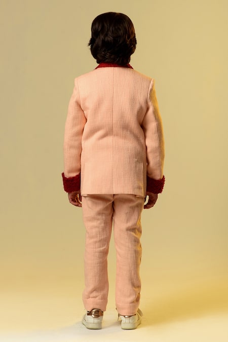 Peach Tissue, Cotton, Terrycloth Notch Lapel Blazer And Trouser Set
