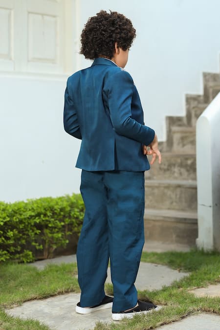 Buy_Littleens_Blue Satin Sequins Taabir Blazer And Trouser Set _Online_at_Aza_Fashions