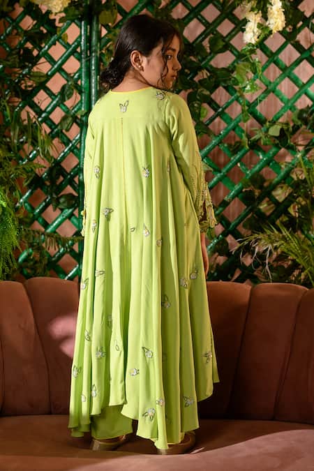 Green Voile, Viscose Embroidery, Beads Viviana Angarkha And Pant Set
