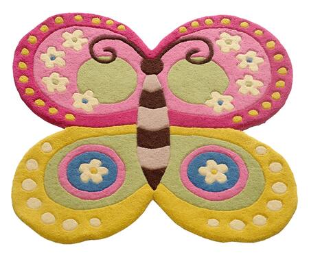 Multi Color Hand Tufted Blend Of 50% New Zealand Wool Handcrafted Butterfly Rug